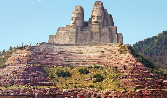 炎黄二帝塑像是国内最雄伟的雕塑之一;它依山就势,以山为体,以82米高的整座向阳山作为像身;在山顶塑造18米高的头像,总高达到100米。二帝坐南朝北,背依邙山,面对黄河;巨像前是一个开阔场地,周围遍植松柏,中间建筑祭坛。