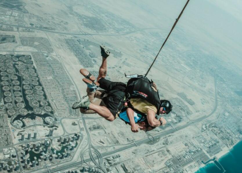 高空跳伞运动-跳伞者乘飞机、气球等航空器或其他器械升至高空后跳下,或者从陡峭的山顶、高地上跳下。在张开降落伞之前和开伞后在空中动作,并利用降落伞减缓下降速度在指定区域安全着陆。