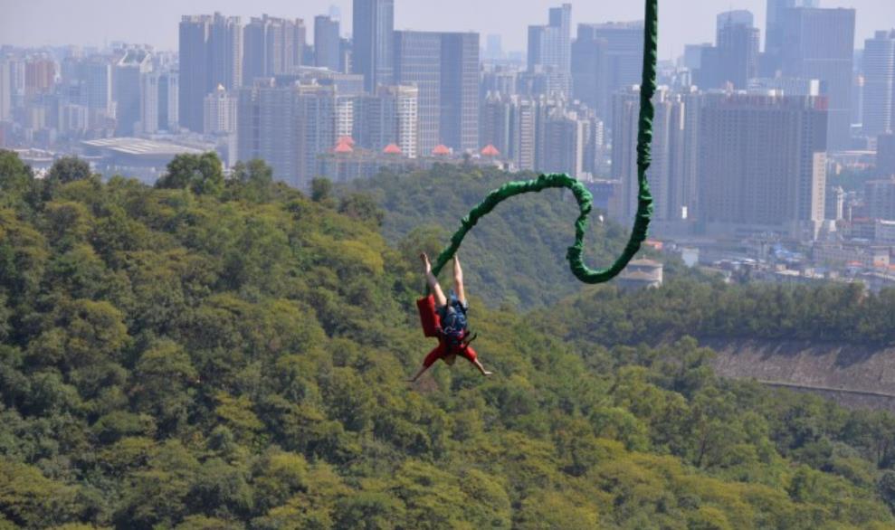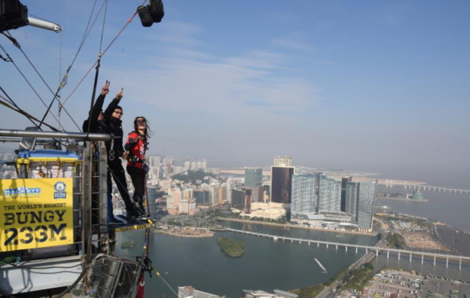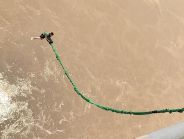 蹦极分为高飞跳和笨猪跳,在233米的高楼上飞跃而下,真的太爽了。