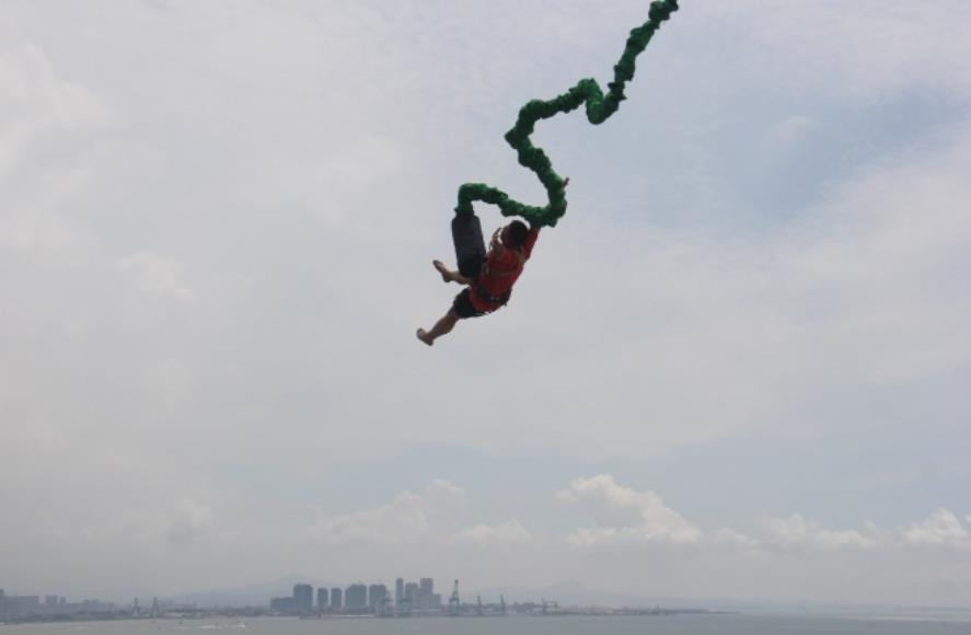 大连星海公园蹦极是直接蹦进大海,这里的蹦极平台高55米,是世界最高海上蹦极,可以双人跳。