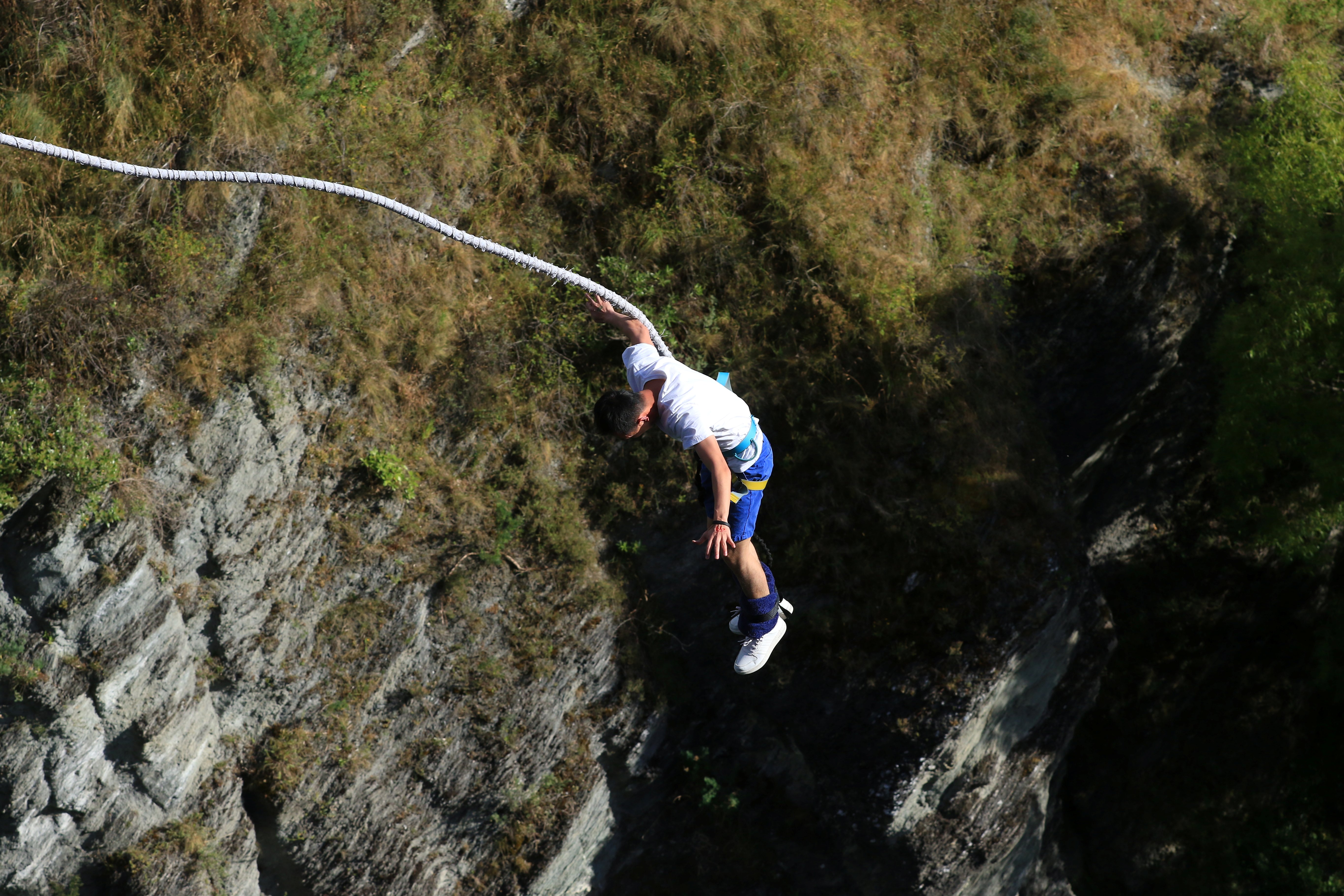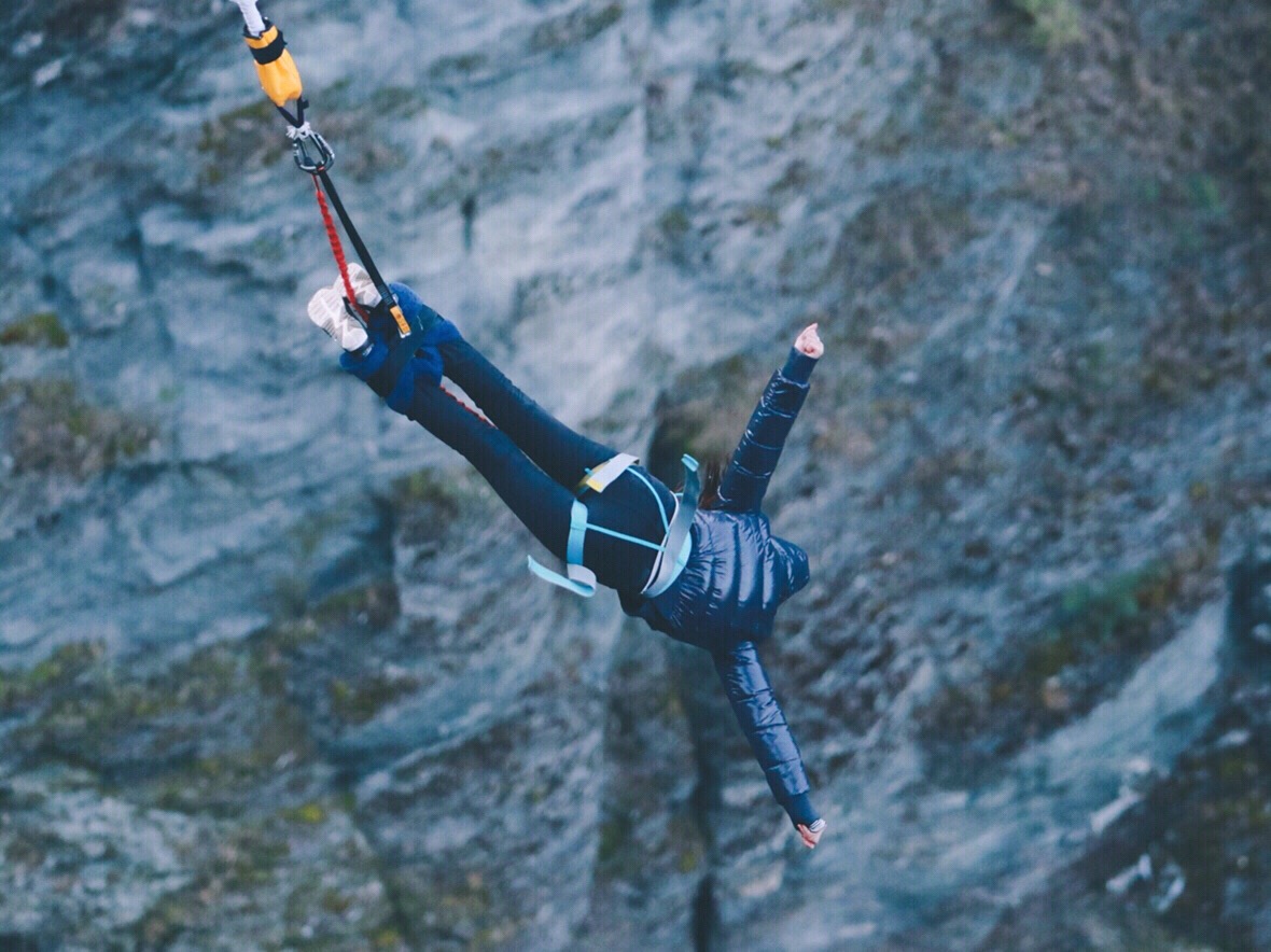 被喻为最接近“死亡的感受”,弹跳者将装备绑在背上,后双手抱胸双脚往下悬空一踩,仿佛由高空坠落,顿时感觉大地旋转,地面事物由小变大,非常刺激。