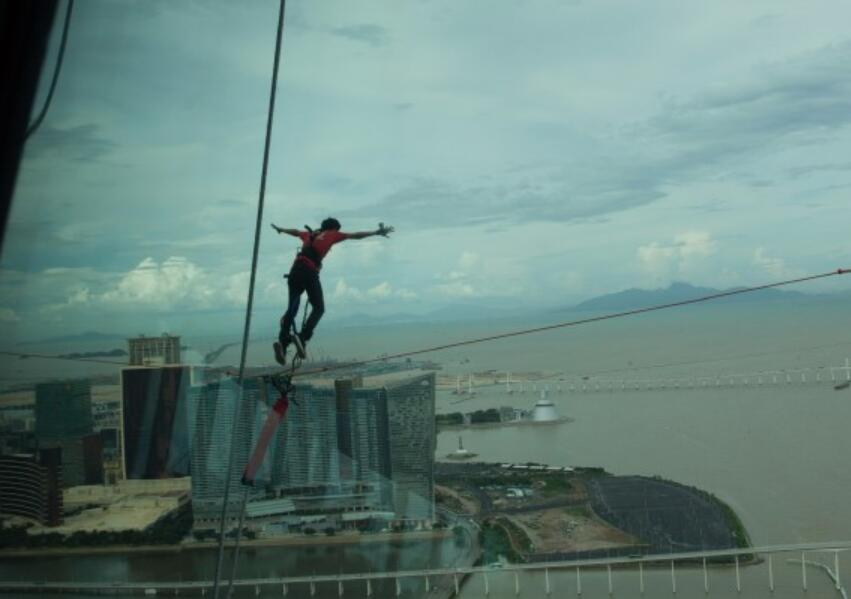 绑腰站于跳台上采用后跃的方式跳下,弹跳时仿佛掉入无底洞,好像整个心脏都要跳出一样。