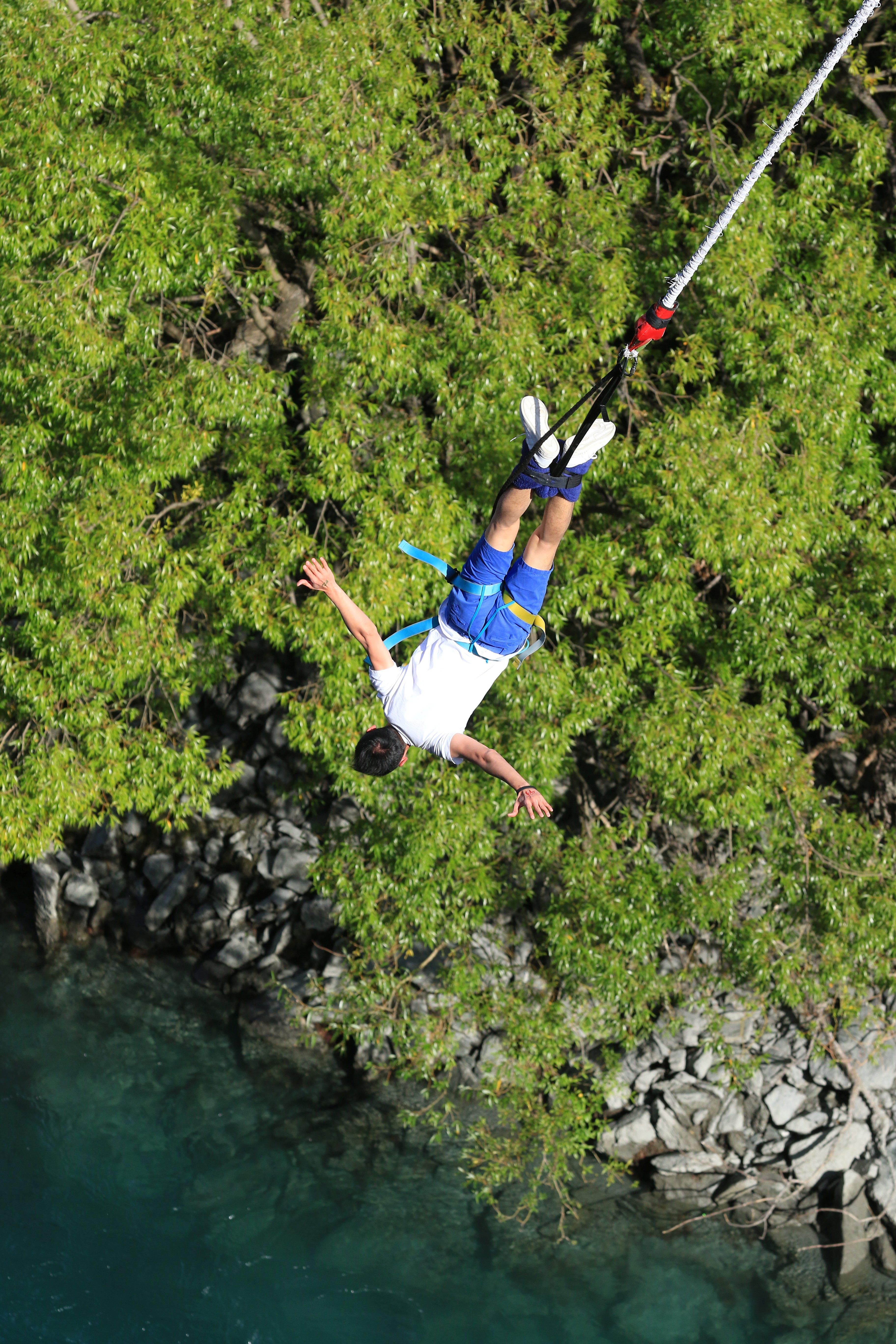 蹦极也有头朝上的,但这种情况一般是教练在表演的时候出现。如果用的坐式安全带,那就不需要一定要头朝下这样跳,因为受力点在腰上。漂亮的动作都有些高难度,如果做不来,别为难自己,比如说翻跟斗,这样很容易发生卷索自尽的情况。