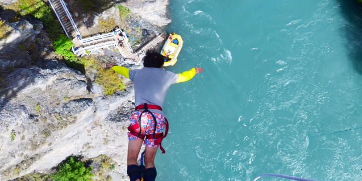 蹦极时绑腰弹跳的时候,虽然受力的装备是绑腰装备,但实际上是整个全身都会受到力的;5月至10月这个时候的天气比较好,很适合游客去蹦极。在高空蹦极中建议游客尽量简练、合身,不要穿易飞散或兜风的衣物。