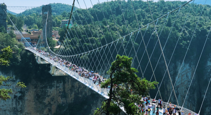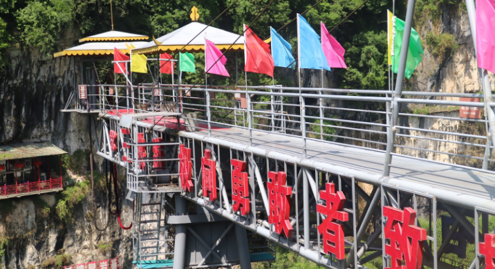 张家界大峡谷蹦极,属于世界上最高的商业蹦极,垂直落差高度达到了令人惊险的260米,而且蹦极跳台直接位于玻璃栈道中间的正下方。