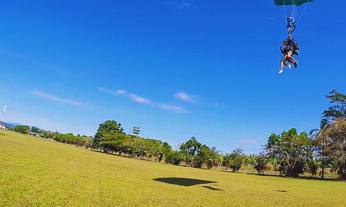 第六阶段:跳伞教练与跳伞体验者一起安全着陆。