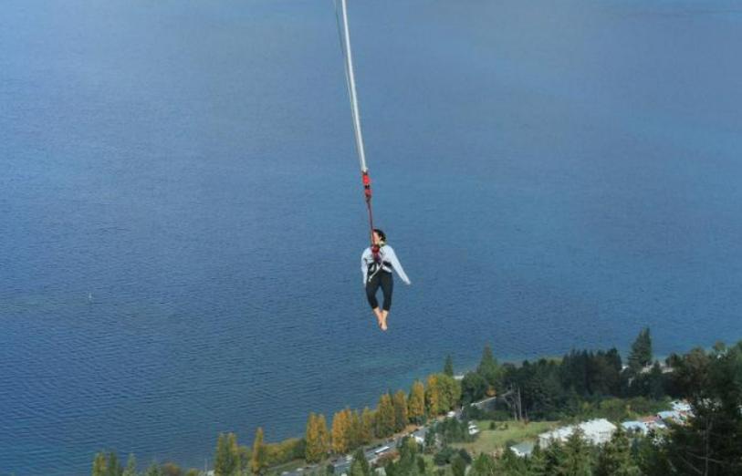 当挑战者站在高高的跳台上远眺,群山叠翠;近观,溪水潺潺,优美风光,一览无余;而当您从跳台上跃下时,犹如凌空直下的燕子,在山水间,自由飞翔;随着橡筋绳的反弹力,您还能变换视野,表演各种动作,在空中悠然荡漾,是何等的舒展、畅快。