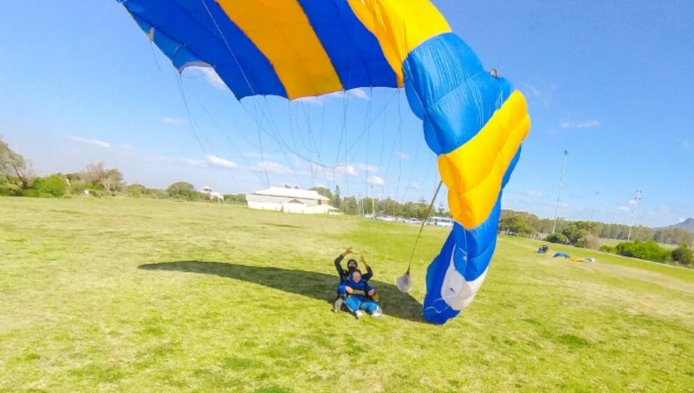 跳伞的姿势要标准,做好标准的落地动作能避免落地时摔伤。听从教练的指挥,靠自己随便乱改动作。