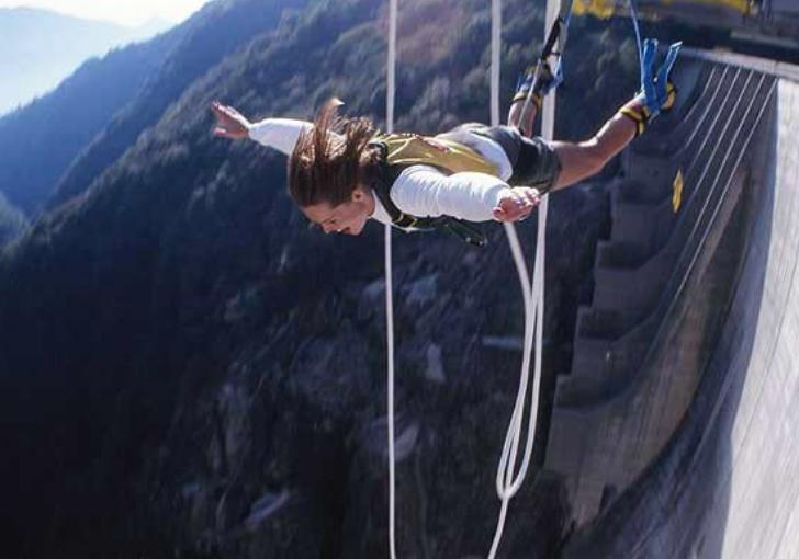 蹦极(Bungee Jumping),也叫机索跳,白话叫笨猪跳,是近些年来新兴的一项非常刺激的户外休闲活动。跳跃者站在约40米以上(相当于10层楼)高度的桥梁、塔顶、高楼、吊车甚至热气球上,把一端固定的一根长长的橡皮条绑在踝关节处然后两臂伸开,双腿并拢,头朝下跳下去。