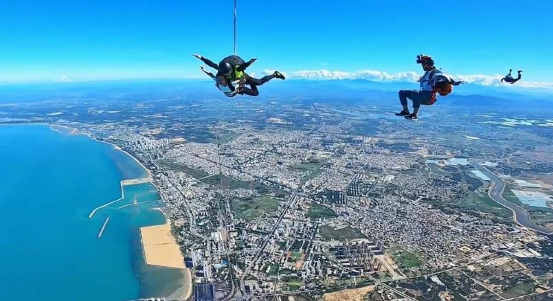 跳下的高度一般700m到3000m之间。跳伞运动是指跳伞员乘飞机、气球等航空器或其他器械升至高空后跳下,或者从陡峭的山顶、高地上跳下,并借助空气动力和降落伞在张开降落伞之前和开伞后完成各种规定动作,并利用降落伞减缓下降速度在指定区域安全着陆的一项体育运动。它以自身的惊险和挑战性,被世人誉为“勇敢者的运动”。
