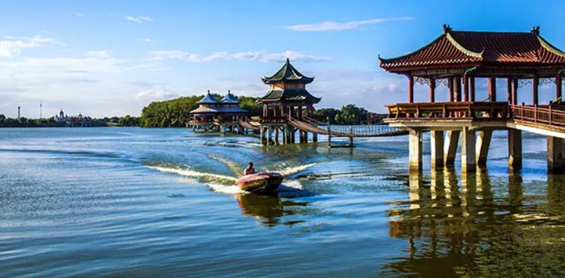 旅游区分为鸟语林、西区、东区,十二花岛、明清苑五大景点。游客在此可行走栈桥,览万顷碧波于脚下;可乘坐舟船,赏十二花岛于四时;可进明清古宅,赏砖瓦缝合、斗拱飞檐。游客在此不仅能够感知“皖风徽韵、梦里水乡”的生态优美,更能感悟古代建筑文化底蕴的历久弥新。