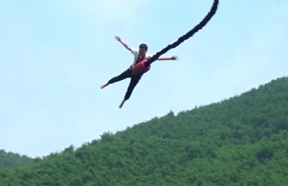 最酷的一种跳法,将装备绑于绑踝上,弹跳者站在跳台上面朝下,象跳水选手一样,弹跳者倒数5、4、3.2、1后即展开双臂,向下俯冲十分刺激。