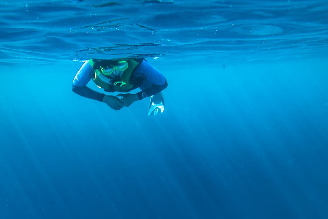 此外,如果感到晕眩或头昏眼花,手臂或者脚感到刺痛时,就要停止潜入水中。
