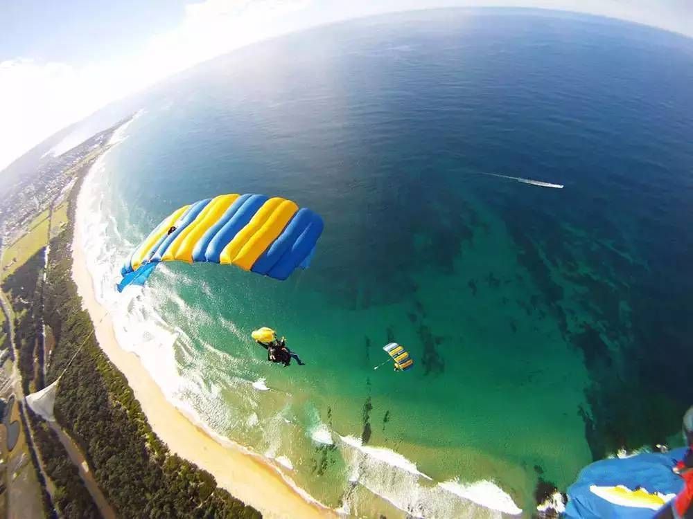 跳伞基本动作是纳气、正确呼吸、依靠双耳分析气流、然后调整身体各个部位、使身体处于平衡状态,懂得依据气流情况、保持开伞姿态、适时打开启动伞、主伞,并快速分析50米范围内气流蜗旋,根据气流控制好自己的主伞,最后关键一条:懂得主伞切割、备副伞的正确使用时机。