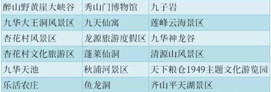 随州:随州市西游记公园、随州市炎帝故里风景名胜区、随州市西游记漂流、随州文化公园、随州市大洪山风景名胜区、中国随州千年银杏谷景区