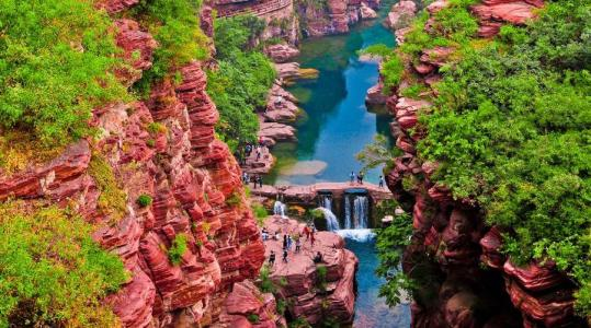 一、焦作云台山位于焦作市修武县北部,被联合国教科文组织评选为全球首批世界地质公园。景区内地形复杂,气候随山势变化各异、泉源丰富、植被茂盛,各种树木和奇花异草种类达五百多种。内部有红石峡、泉瀑峡、潭瀑峡、叠彩洞、茱萸峰、万善寺、峰林峡等主要景点。主峰茱萸峰海拔1314米,可以眺望怀川平原,云台山有落差314米的云台天瀑,是中国发现的落差最大的瀑布之一。