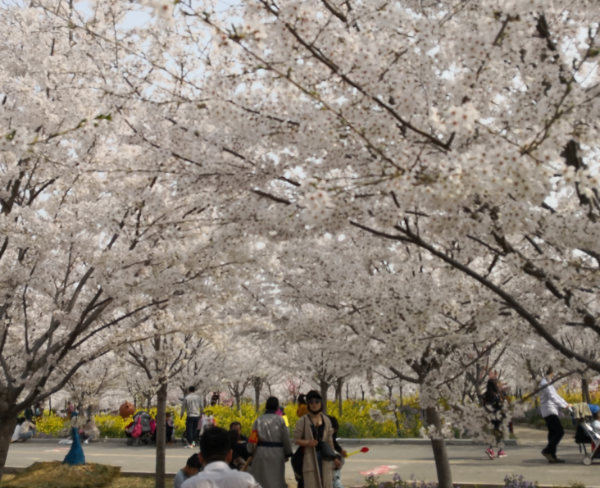 孤柏渡樱花园,占地5000亩,80余个珍贵品种,比如初美人、河津、寒绯、大岛、郁金、普贤、菊樱、关山等品种,次第怒放,如霞映雪,如黛似粉,妩媚多姿、繁花似锦、烂漫荡漾,与春风共舞,花醉人更痴。站在高高的樱花阁上,极目远眺,黄河岸边已被染成万紫千红,南水北调的一汪清泉穿过花海、越过黄河径直北上,脚下的邙山,远山近景,花海芳菲,清香四溢。打扮得花枝招展的人们,说着、笑着、唱着、照着,虽然戴着口罩,但愉悦的心情溢于言表,欣欣然,预似着祖国山河生机勃勃,欣欣向荣。