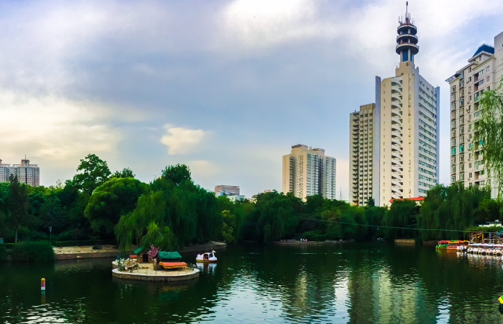 郑州人民公园面积30.14公顷,其中水面3.37公顷,绿化面积25.41公顷,主要是以苍松翠柏做基调,各种花色的花、灌木点缀其间;乔、灌、花、草搭配栽植,构造出大面积的树林、草地园林景观。