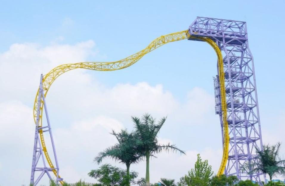 狭长的轨道扭曲360°后形成圆环、优雅神秘,暴风一般的速度转体720°后半空骤停、急速倒退,创造出疯狂刺激的风中旅程,圆环过山车——暴风眼加入多种高空运动体验元素,让忐忑和刺激的感觉交织冲击您的极限。