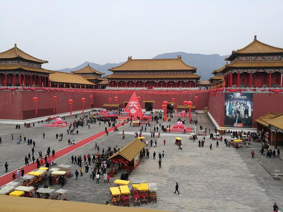 秦王宫是为陈凯歌导演拍摄历史巨片《荆柯刺秦王》而建,以是秦王朝最主要的宫殿——咸阳宫为原型。景区最主要的景点是四海归一殿,分前殿、中殿、后殿,纵深长达120多米,是秦王上朝理政之地。众多影视大片和历史正剧的摇篮,《英雄》、《寻秦记》、《美人心计》等近百部影视大片都在此拍摄。