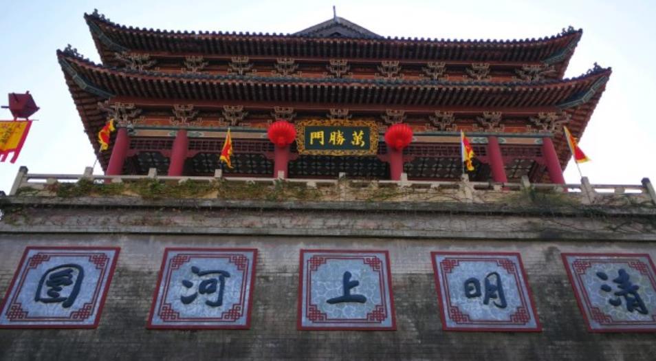 景区分外城、里城和宫城。城中有“汴河”蜿蜒,形成了城外有城, 河内 有河的独特格局。城内店铺林立,楼宇鳞次栉比,气派的樊楼,别致的水门,名妓李师师精美的绣阁,奸臣佞相蔡京、童贯的府第,都让人依稀感受到宋朝中原的权贵奢华,展示出宋代 京都 文化和繁华喧闹的市井文化,真正是“一朝步入画中,仿佛梦回千年” 。