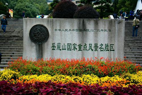 岳麓山位于长沙市湘江西岸,是著名的风景名胜区。游览区面积553.3公顷,最高峰海拔300米,山涧幽壑,树木葱翠,风景幽美。在群峦叠翠之间错落着晋陶侃、唐裴休、宋朱熹等人的寓所和近代著名革命家黄兴、蔡锷、陈天华、焦达峰等人的墓庐。儒、佛、道三教在此长期共存,遗存比比皆是,主要景观有岳麓书院、麓山寺、隋舍利塔、云麓宫、禹王碑、爱晚亭等。全国四大书院之首的岳麓书院为湖南大学的源头,系全国重点文物保护单位,位于岳麓山抱黄洞下,历千年而不衰。