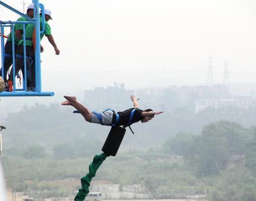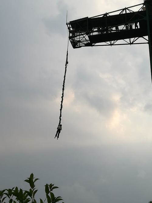 玩这个有几种绑法,绑背刺激,因为人的视线始终是朝下的。绑脚也可以,往下落的时候,感觉不到绳子的存在。第一次蹦极都是绑腰,第二次去的话你就可以尝试绑腿了。
