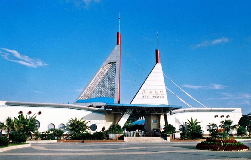 科教馆:建筑面积1100㎡,包括有科教室、生物进化展厅、海洋动物展厅和海洋贝壳展厅四个部分。有图文并茂与实物标本、模型相结合的科普知识走廊,以电脑、投影等电教设备开展科普知识课堂。游客在这里可以获得丰富的海洋生物、生态学和环境保护知识和信息。