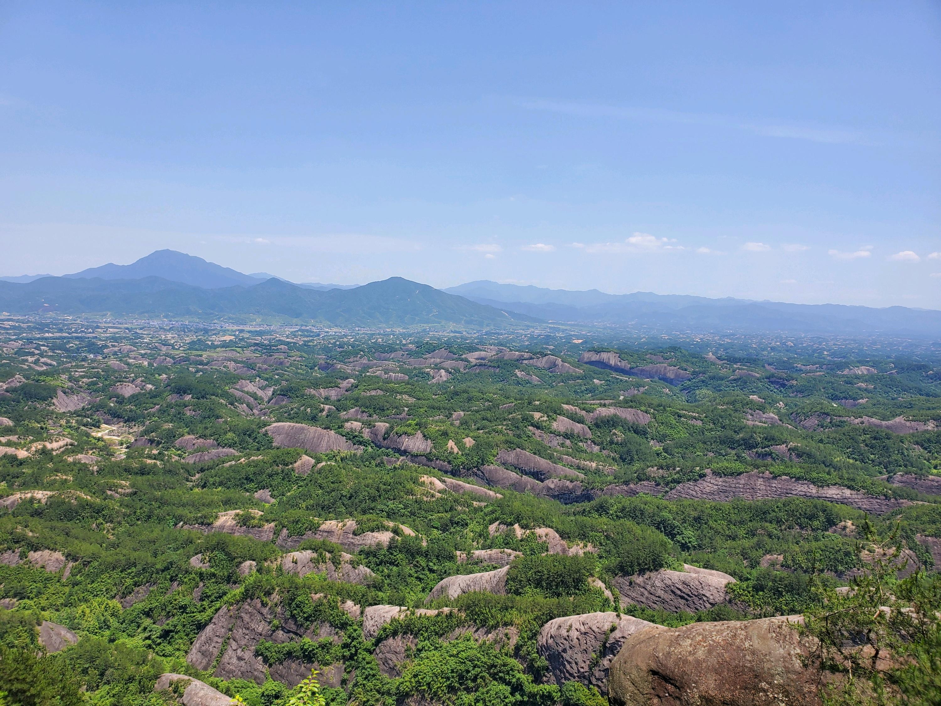 在中寨风景区,我们能看见蜿蜒向上的山道,景色很漂亮,爬上峰顶,可以看见一座巨大的玻璃桥。站在上面,感觉就像是站在天上似的,有很多人在上面拍照。