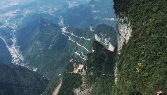 天门山古称嵩梁山,三国时期嵩梁山忽然峭壁洞开,玄朗如门,形成迄今罕见的世界奇观——天门洞,吴帝孙休认为这是吉祥的征兆,于是将嵩梁山改名天门山,山下置天门郡,也就是今张家界市。