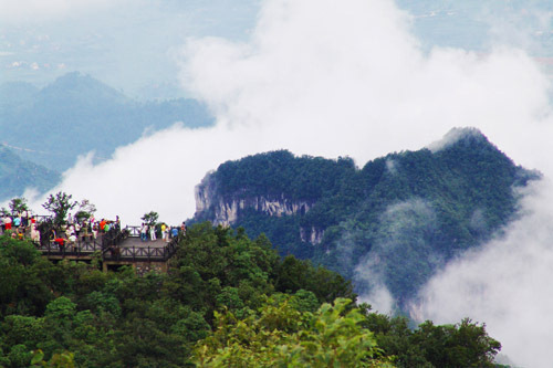 位于天门山国家森林公园内,是天门山西线旅游的核心景点,与云梦仙顶一起为天门山两大景观台之一。此处地势高绝,云雾缭绕,给人直冲云霄之感;视野辽阔,可遥望见张家界市区及周边的风光,山峦叠嶂,仿若仙境,被誉为“凌霄畅远”,为天门十景之一。