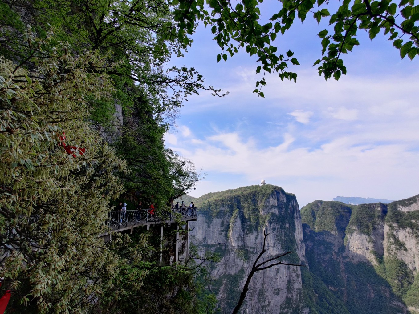 森林观光缆车是天门山山顶的特色代步工具,缆车以天门山主峰云梦仙顶为起点,以天门山寺前樱桃湾广场为终点,总长度为800米,单程运行约10分钟,为无遮盖的双人吊椅式,每小时运力可达600人。乘坐缆车,不仅可俯瞰绝美空中原始花园风景,也使得前往著名的天门山寺游览更为轻松便捷。