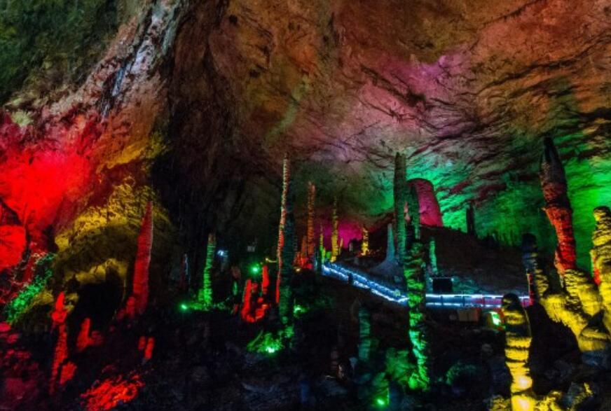 张家界黄龙洞全长7.5公里,垂直高度140米。洞体共分四层,整个洞内洞中有洞,洞中有河,石笋、石柱、石钟乳各种洞穴奇观琳琅满目,美不胜收。中国地质部70多位专家的考察结论则是:黄龙洞规模之多内容之全、景色之美几乎包揽了《洞穴学》的全部内容,是世界溶洞的“全能冠军”。