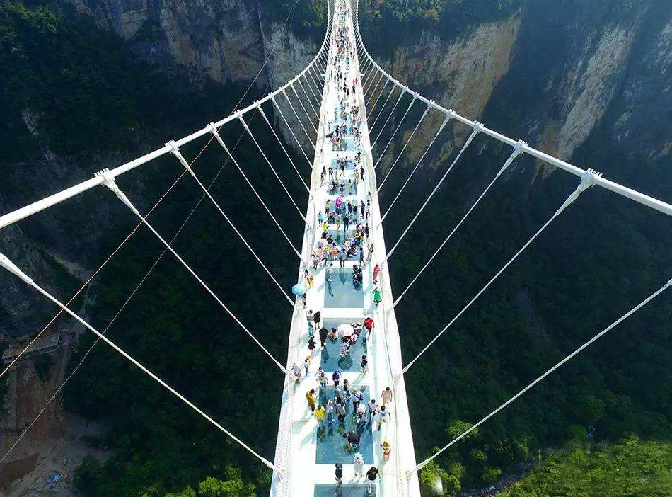 袁家界是电影《阿凡达》中“哈利路亚山”的取景地,你可以在这里探寻电影中群山漂浮、星罗棋布的魔幻世界。如果碰巧山中下起了小雨,或是等到雨后初晴,更能欣赏到雾气弥漫、群峰叠嶂的美景。迷魂台是理想的观景位置,站在台上,四周有上百座石峰矗立,气势磅礴。这里还能看到横跨于两山之间,垂直高差357米的天下第一桥。