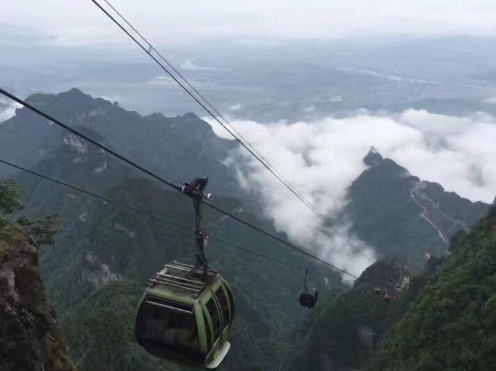游览景区时,须乘坐长达约7500米的索道,你可以在缆车中俯瞰脚下盘旋在峭壁之间的通天大道和山中美景。胆大的还可以走一走贴壁悬空的玻璃栈道,体验凌空行走的刺激。