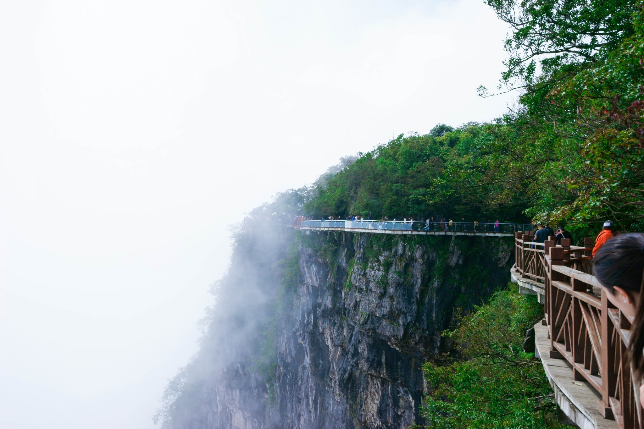 游览景区时,须乘坐长达约7500米的索道,你可以在缆车中俯瞰脚下盘旋在峭壁之间的通天大道和山中美景。胆大的还可以走一走贴壁悬空的玻璃栈道,体验凌空行走的刺激。