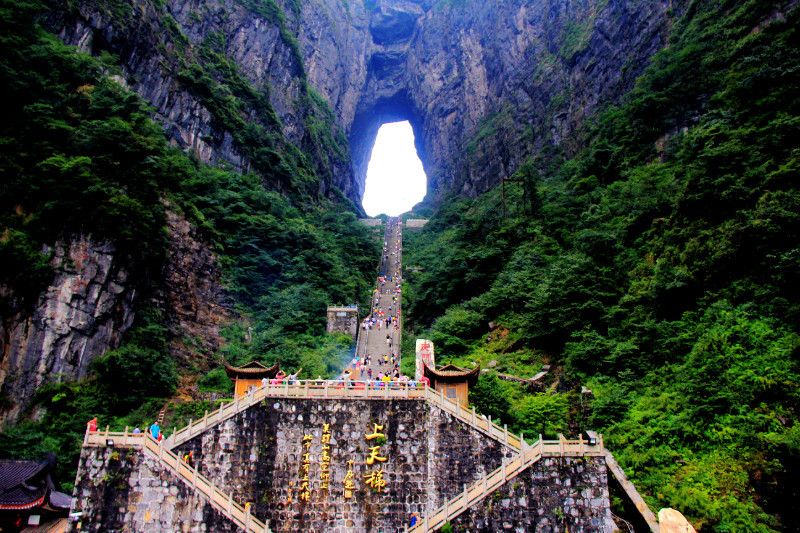 天门山国家森林公园距离张家界城区较近,对于普通游客来说,天门洞并不是全年开放的,在每年的冬季,由于下雪道路结冰,天门洞以及通往天门洞的通天大道(99个弯的盘山公路)都会关闭。