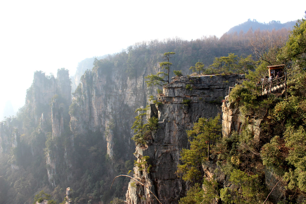 天子山景区,天子山原名青岩山,因古代土家族领袖向大坤率领当地农民起义自称“天子”而得名,武陵源的四大景区之一。