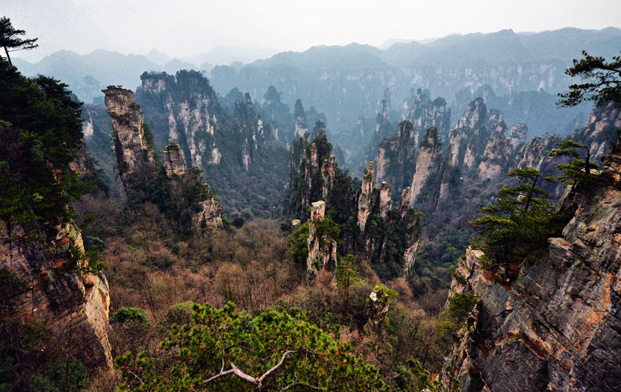 天子山景区,天子山原名青岩山,因古代土家族领袖向大坤率领当地农民起义自称“天子”而得名,武陵源的四大景区之一。