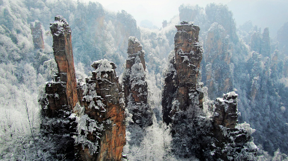 2、砂岩峰林地貌。张家界是典型的砂岩峰林地貌,又称为张家界地貌。张家界的山多是拔地而起,高低悬殊,奇峰林立,千姿百态。是以侵蚀构造为主导作用,由石英砂岩形成的砂岩峰林地貌。