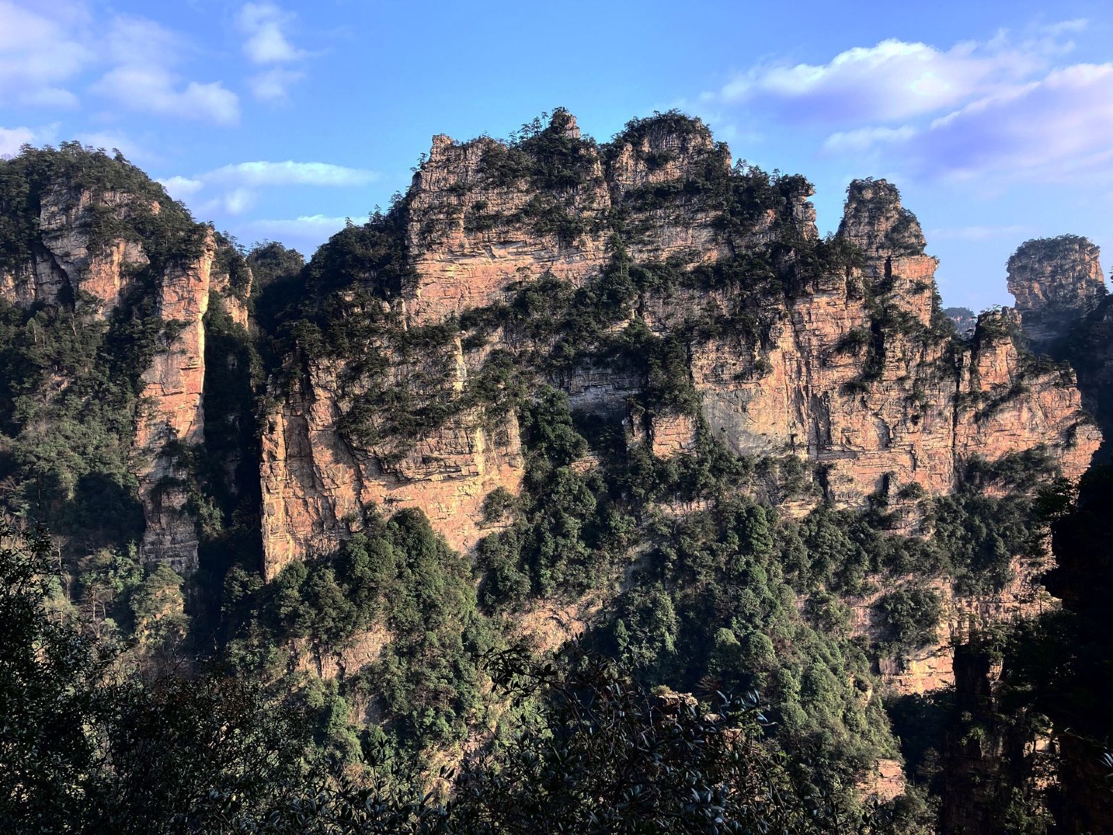 百龙天梯气势恢弘,垂直高差335米,运行高度326米,由154米的山体内竖井和172米的贴山钢结构井架组成,采用三台双层全暴露观光并列分体运行。以“最高户外电梯”荣誉而被载入吉尼斯世界纪录™,是自然美景和人造奇观的完美结合。百龙天梯的建成实现“山上游,山下住”的目标,将袁家界、金鞭溪、天下第一桥、迷魂台等绝世美景从幕后推向了前台,解决了多年困扰景区的交通瓶颈问题,实践证明建设百龙天梯是非常重要的。