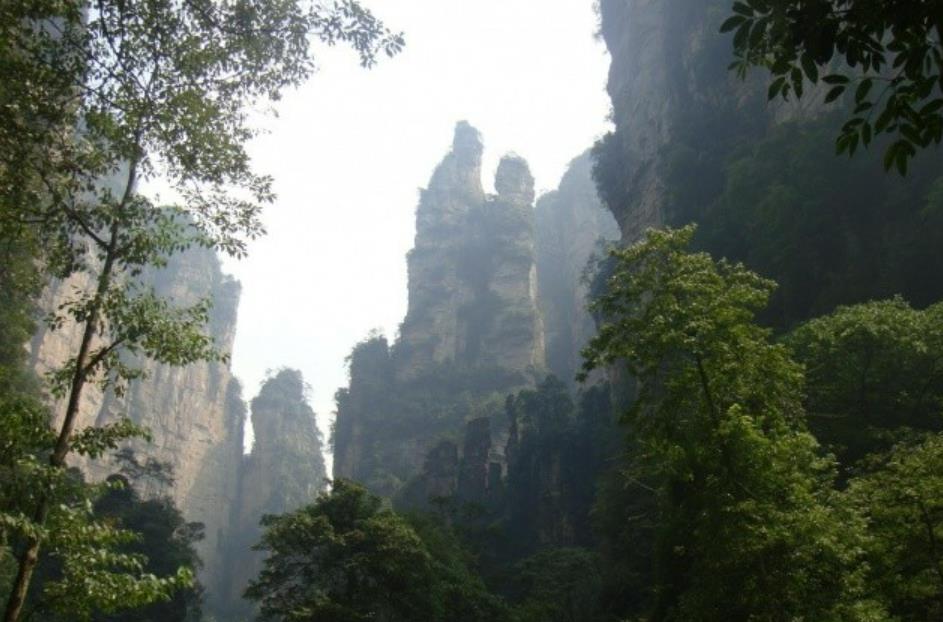 袁家界景区是一个山地高台,这里树木茂盛,有雾气弥漫、群峰叠嶂的美景。的景点是电影《阿凡达》中的悬浮山“哈利路亚山”的取景地——乾坤柱。袁家界景区游览完毕后,可以乘坐景区免费环保车前往北部的天子山景区游玩。也可以当天在袁家界住宿,景区内有不少农家。