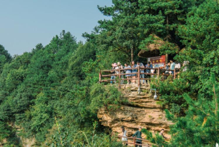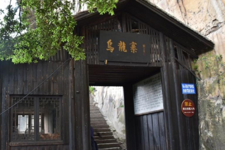 乌龙寨是杨家寨景区中最为奇险的一个去处,入内或钻洞而行或沿崖缝而行或自岩道上侧身而行。寨高300余米,四周均是石壁,只有前面一条长达1000米长的小径可通上寨顶,小径沿途有多处天然关卡。