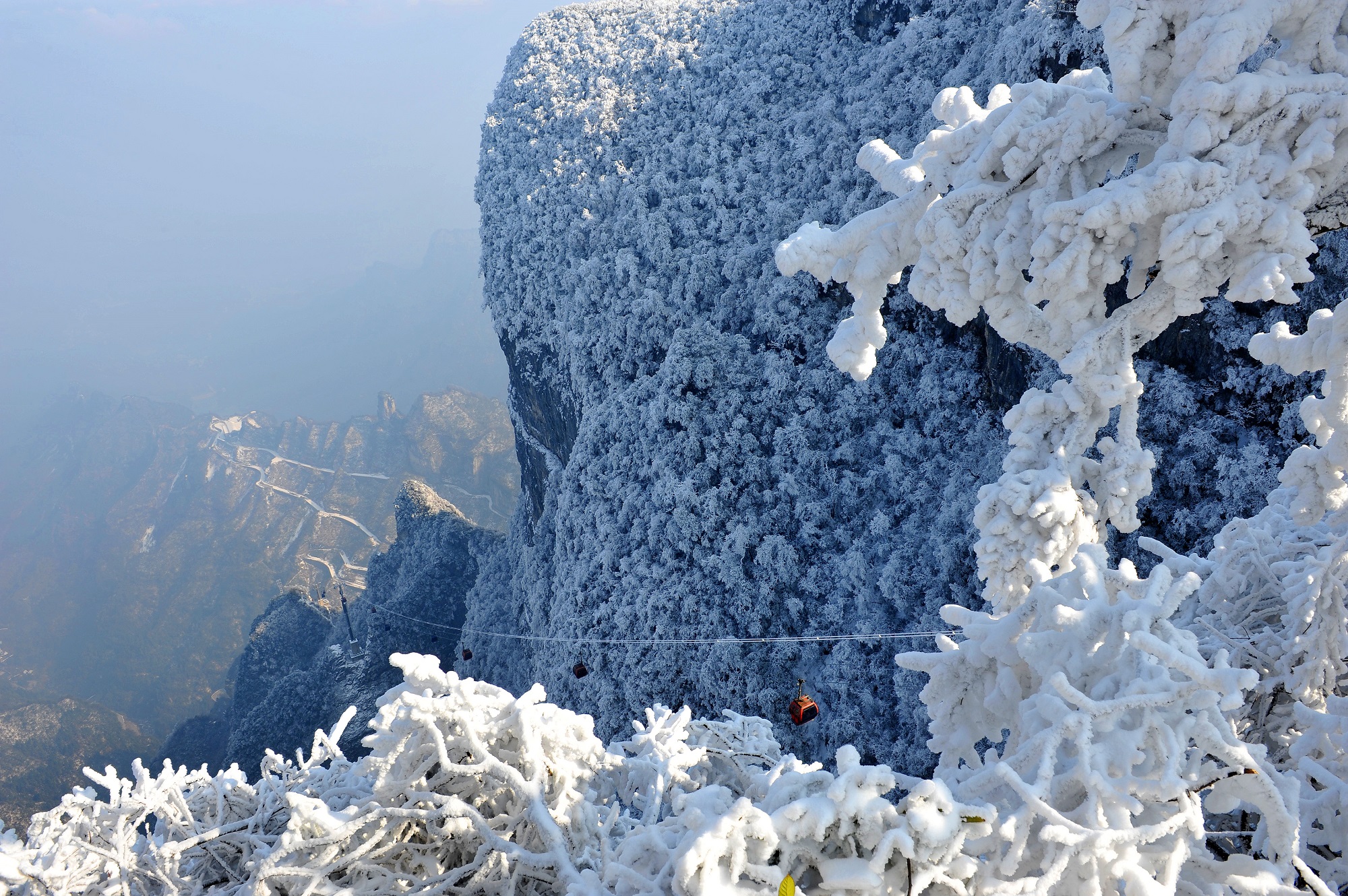 天门山国家森林公园因自然奇观“天门洞”而得名。游览景区时,须乘坐长达约7500米的索道,你可以在缆车中俯瞰脚下盘旋在峭壁之间的通天大道和山中美景。胆大的还可以走一走贴壁悬空的玻璃栈道,体验凌空行走的刺激。