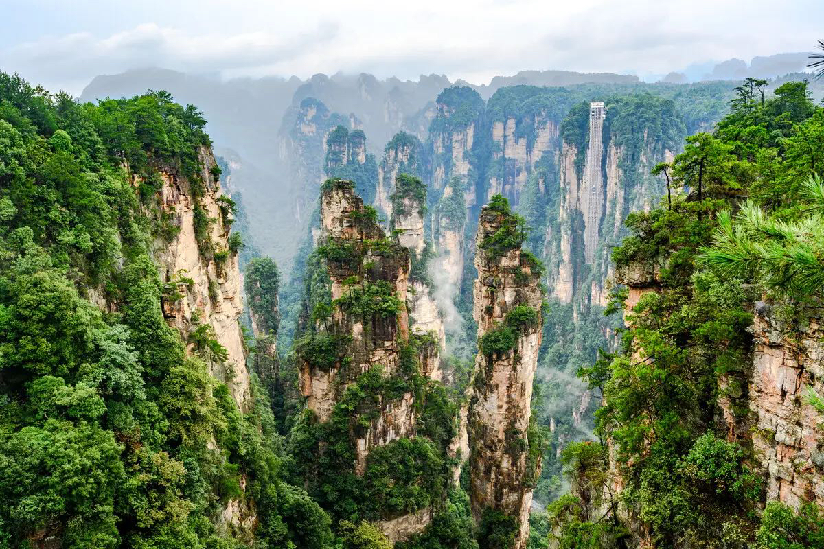 张家界国家森林公园,分为黄石寨、金鞭溪、袁家界、杨家界、天子山和索溪峪等区域,是游玩张家界不可不去的核心景点。三千多座造型奇异的山峰拔地而起,满目青翠。峰谷间云雾缭绕,随处可见飞瀑溪水,风光美不胜收。电影《阿凡达》中的悬浮山“哈利路亚山”也曾在此取景,相信影迷们一定不会对这里陌生。