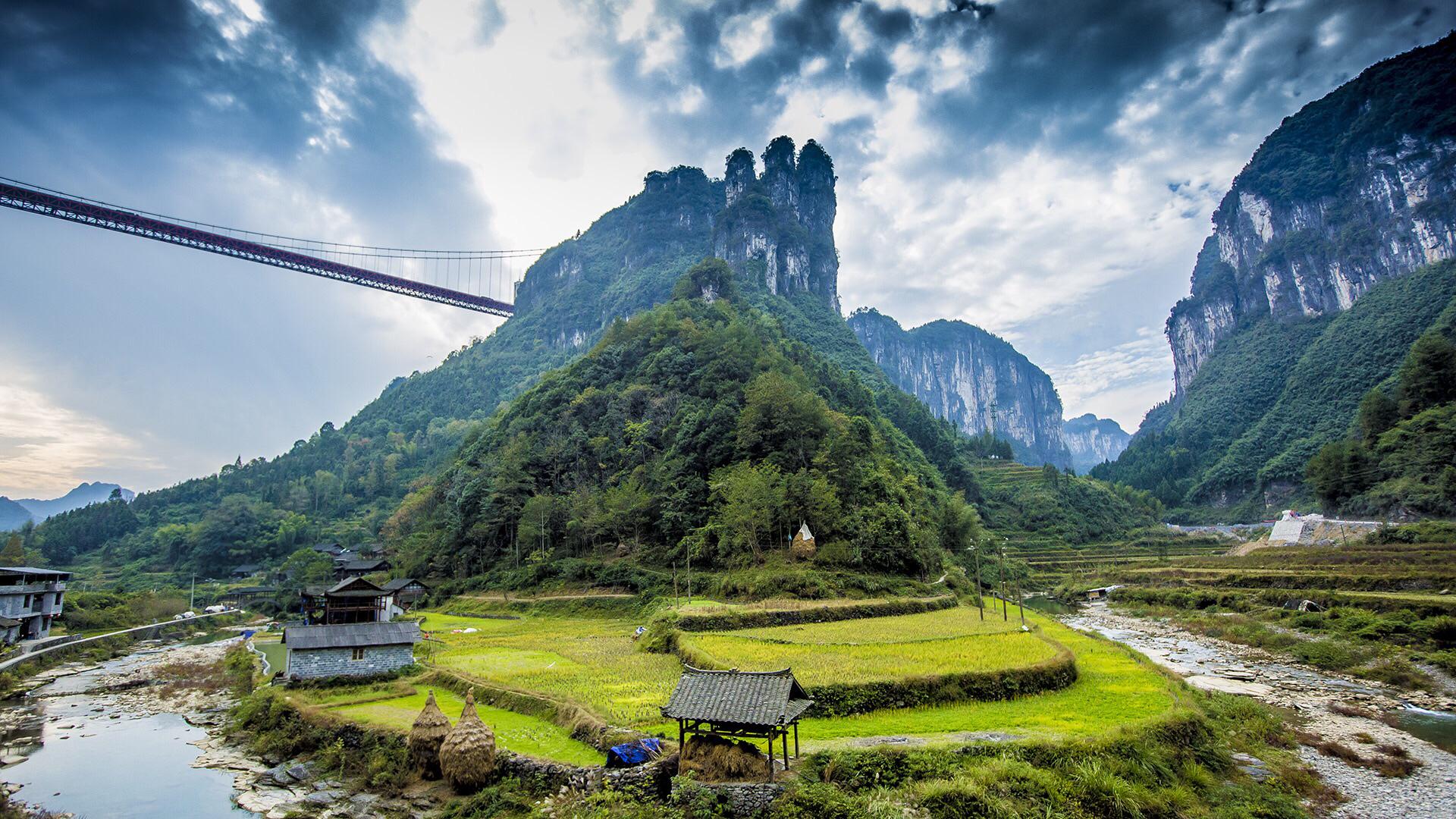 集山、水、洞于一身的张家界地貌的博物馆,在此可观赏到北温带喀斯特地形的全部风景。峡谷里植被茂盛,空气清新,飞流瀑布、小溪泉水随处可见,犹如一个天然大氧吧。