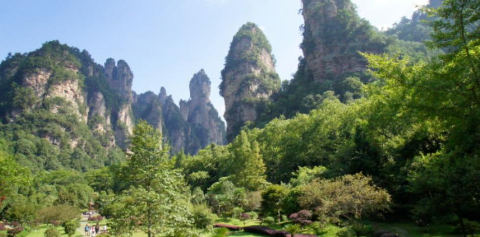 张家界,又名青岩山,面积一百三十平方公里,是中国第一个国家森林公园,它地处武陵山中。张家界地貌奇特,有石峰2000多座,形态各异,树木茂盛,森林覆盖率达88%,以黄狮寨、砂刀沟、金鞭岩、金鞭溪等最为著名。有黄狮寨、金鞭溪、腰子寨、琵琶溪、砂刀沟、朝天观、后花园七条主要旅游线。