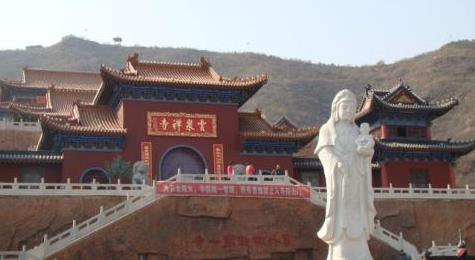 远望赐儿山,峭壁如削,万木峥嵘,亭台楼阁,参差错落。若登山而上沿路 铺设台阶路面,陡削路段则安装扶手栏杆,拾级而上即可达云泉寺。蜿蜒山路有三道平台,第一道平台有六角亭一座,有大雄宝殿和南大殿;第二道为望亭;第三道是云泉寺山门,山门也称天王殿。山门之外原 有教稼亭,壁上有民间巧匠画的五谷之神后稷,教人不忘耕稼。稍上是教化堂,壁上画有伏义轩辕,意在告诫后人勤于劳作,时时不忘自己为炎黄子孙。山门前有石狮镇守,旗杆矗立。山门内侧是龙王殿、真武 殿、藏经殿中释迦佛祖合掌闭目,南海观音挥洒拂尘,造型生动,栩栩如生。