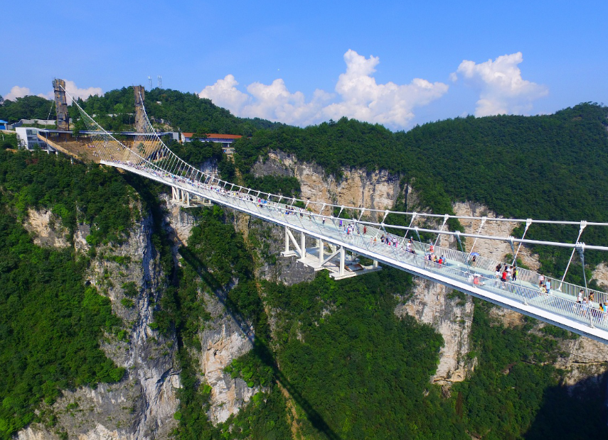 张家界玻璃桥在张家界大侠谷景区内,位于张家界市慈利县三官寺乡。景区内多以峡谷、飞流、云山著称于世,不禁让游客流连忘返。