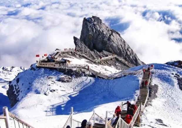 玉龙景观玉龙雪山是云南亚热带的极高山地,从山脚河谷到峰顶具备了亚热带、温带到寒带的完整的垂直带自然景观。雪山自然旅游资源丰富,景观大致可分为雪域冰川景观、高山草甸景观、原始森林景观、雪山水景等。主峰扇子陡海拔5596米,是世界上北半球纬度最低、海拔最高的山峰。